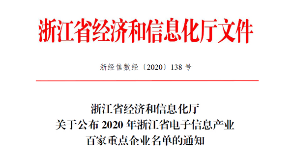 2020年10月21日,浙江省經(jīng)濟和信息化廳公布了“2020年浙江省電子信息產(chǎn)業(yè)百家重點企業(yè)”名單,國芯以堅守科技創(chuàng)新的精神助力浙江省數(shù)字經(jīng)濟產(chǎn)業(yè)發(fā)展,連續(xù)四年入選“浙江省電子信息50家成長性特色企業(yè)”名單。