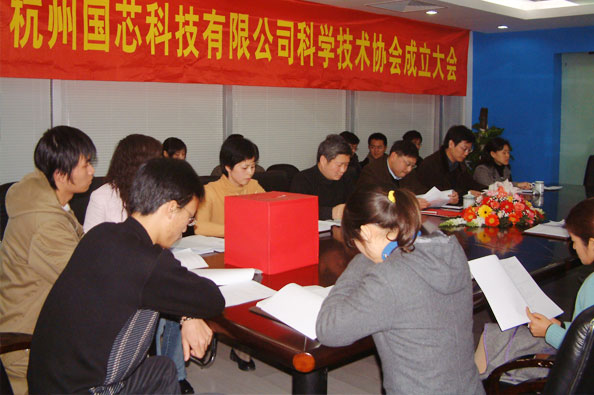2005年12月12日,杭州國(guó)芯科技股份有限公司科學(xué)技術(shù)協(xié)會(huì)成立大會(huì)在國(guó)芯公司隆重召開(kāi),杭州高新區(qū)經(jīng)發(fā)局局長(zhǎng)金志鵬、姜黎等高新區(qū)科協(xié)領(lǐng)導(dǎo)與國(guó)芯公司部分代表一起出席了此次大會(huì)。