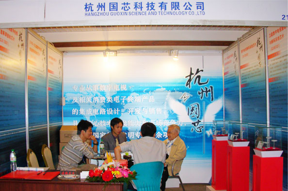 杭州國芯科技股份有限公司6款主流芯片在展會中進行展示,它們分別為:衛(wèi)星數(shù)字電視接收與解碼系統(tǒng)芯片(GX6101)、數(shù)字電視解碼系統(tǒng)芯片(GX3000)、DVB-T地面數(shù)字電視信道解調(diào)接收芯片(GX1201)、DVB-S有限數(shù)字電視信道解調(diào)接收芯片(GX1001)、DVB-S衛(wèi)星數(shù)字電視信道解調(diào)接收芯片(GX1101)、數(shù)字視頻處理芯片(GX2001)。