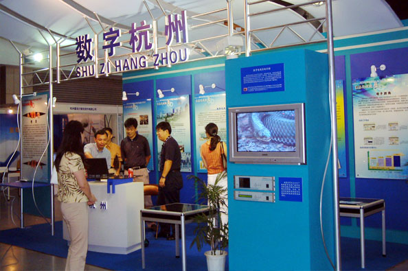 杭州國芯科技股份有限公司的高清晰度數(shù)字電視傳輸系統(tǒng)作為“數(shù)字杭州”的重要展示內(nèi)容之一參展。據(jù)悉,杭州市將以數(shù)字電視、國家信息化、電子政務(wù)、電子商務(wù)4個試點和國家軟件產(chǎn)業(yè)化、集成電路設(shè)計產(chǎn)業(yè)化2個基地建設(shè)為突破口,加快推進國民經(jīng)濟和社會信息化,構(gòu)筑“數(shù)字杭州”,建設(shè)“天堂硅谷”。